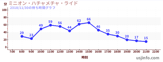 • ミニオン・ハチャメチャ・ライド$B$N(B2018年11月30日の待ち時間