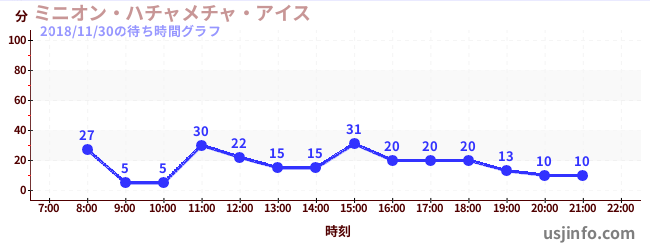 • ミニオン・ハチャメチャ・アイス$B$N(B2018年11月30日の待ち時間