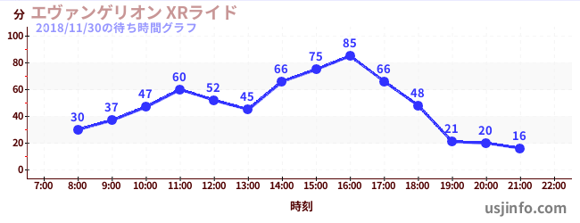 • エヴァンゲリオン XRライド$B$N(B2018年11月30日の待ち時間