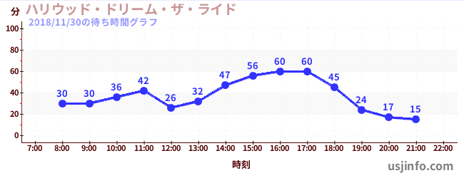 • ハリウッド・ドリーム・ザ・ライド$B$N(B2018年11月30日の待ち時間