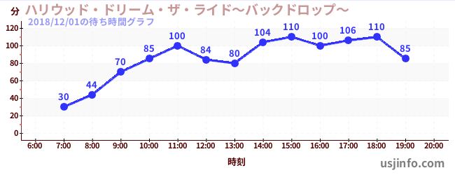 • ハリウッド・ドリーム・ザ・ライド〜バックドロップ〜$B$N(B2018年12月01日の待ち時間