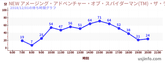 • NEW アメージング・アドベンチャー・オブ・スパイダーマン(TM)・ザ・ライド 4K3D$B$N(B2018年12月01日の待ち時間