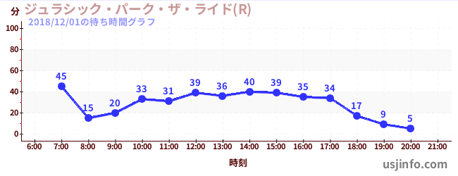 • ジュラシック・パーク・ザ・ライド(R)$B$N(B2018年12月01日の待ち時間