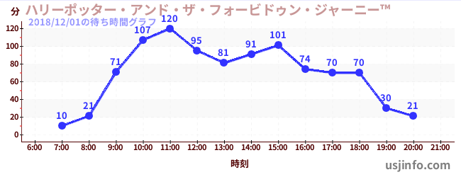 • ハリーポッター・アンド・ザ・フォービドゥン・ジャーニー™$B$N(B2018年12月01日の待ち時間