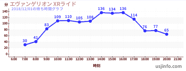 • エヴァンゲリオン XRライド$B$N(B2018年12月01日の待ち時間