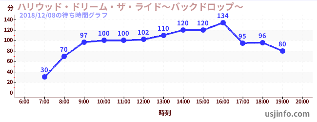 • ハリウッド・ドリーム・ザ・ライド〜バックドロップ〜$B$N(B2018年12月08日の待ち時間