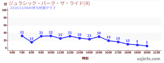 • ジュラシック・パーク・ザ・ライド(R)$B$N(B2018年12月08日の待ち時間