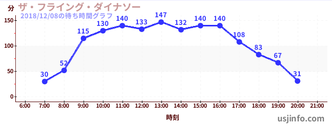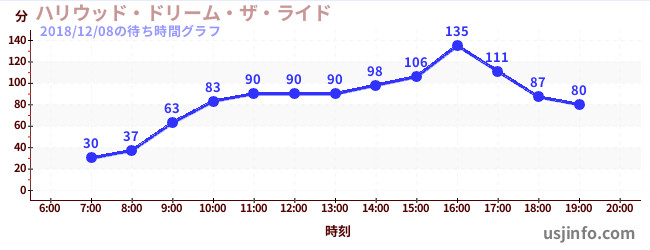 • ハリウッド・ドリーム・ザ・ライド$B$N(B2018年12月08日の待ち時間