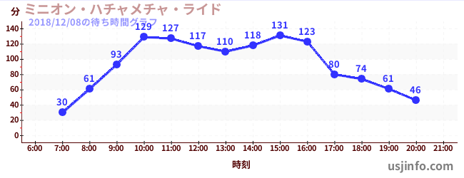 • ミニオン・ハチャメチャ・ライド$B$N(B2018年12月08日の待ち時間