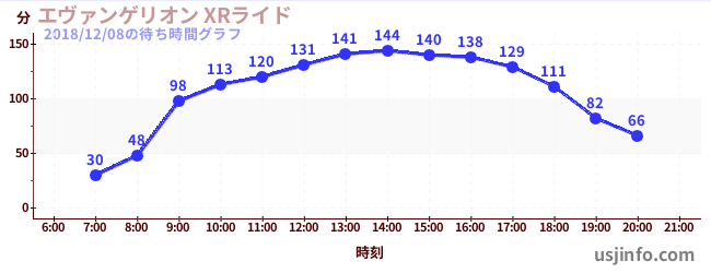 • エヴァンゲリオン XRライド$B$N(B2018年12月08日の待ち時間