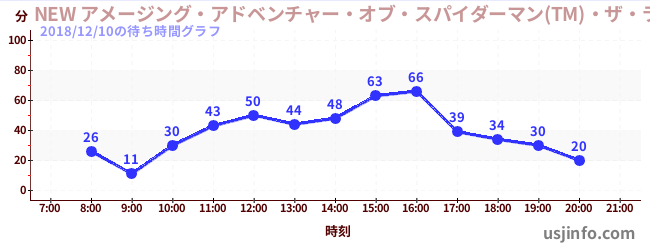 • NEW アメージング・アドベンチャー・オブ・スパイダーマン(TM)・ザ・ライド 4K3D$B$N(B2018年12月10日の待ち時間