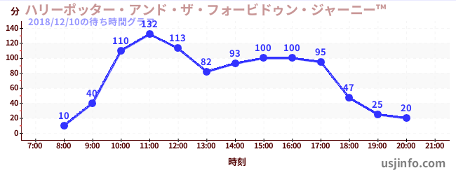 • ハリーポッター・アンド・ザ・フォービドゥン・ジャーニー™$B$N(B2018年12月10日の待ち時間