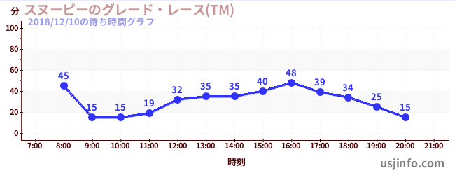 • スヌーピーのグレード・レース(TM)$B$N(B2018年12月10日の待ち時間