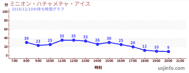 • ミニオン・ハチャメチャ・アイス$B$N(B2018年12月10日の待ち時間