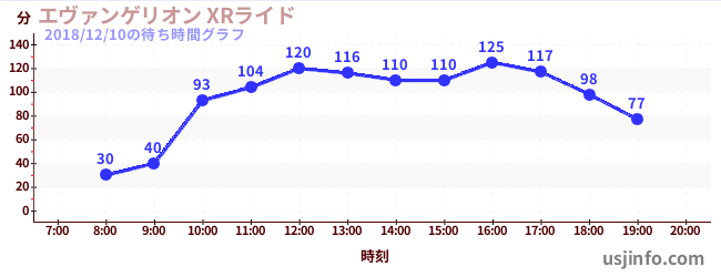 • エヴァンゲリオン XRライド$B$N(B2018年12月10日の待ち時間