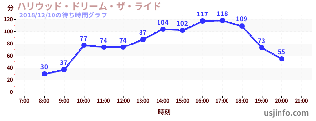 • ハリウッド・ドリーム・ザ・ライド〜バックドロップ〜$B$N(B2018年12月10日の待ち時間