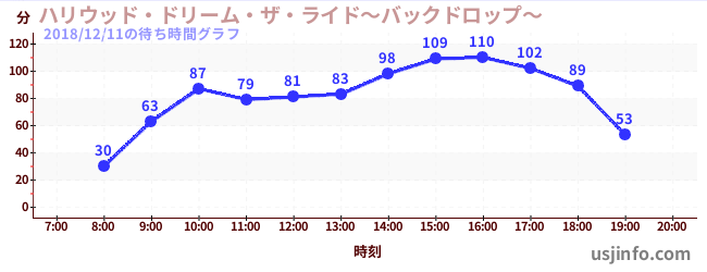 • ハリウッド・ドリーム・ザ・ライド〜バックドロップ〜$B$N(B2018年12月11日の待ち時間