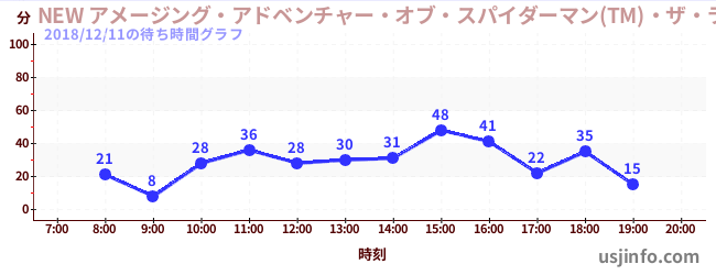 • NEW アメージング・アドベンチャー・オブ・スパイダーマン(TM)・ザ・ライド 4K3D$B$N(B2018年12月11日の待ち時間