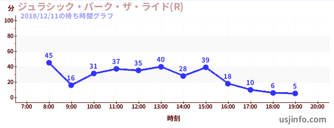 • ジュラシック・パーク・ザ・ライド(R)$B$N(B2018年12月11日の待ち時間