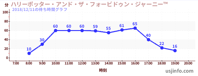 • ハリーポッター・アンド・ザ・フォービドゥン・ジャーニー™$B$N(B2018年12月11日の待ち時間