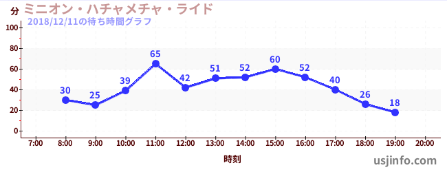 • ミニオン・ハチャメチャ・ライド$B$N(B2018年12月11日の待ち時間