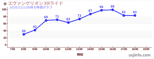 • エヴァンゲリオン XRライド$B$N(B2018年12月11日の待ち時間
