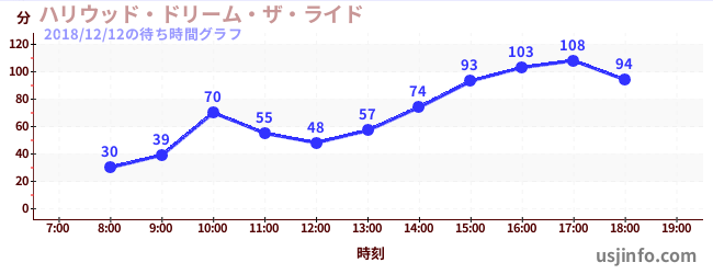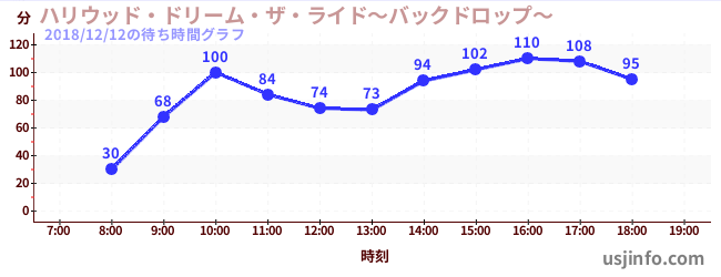 • ハリウッド・ドリーム・ザ・ライド$B$N(B2018年12月12日の待ち時間