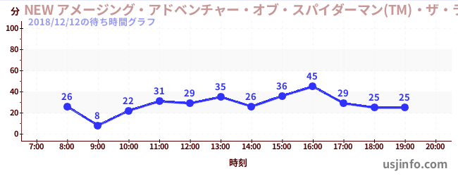 • NEW アメージング・アドベンチャー・オブ・スパイダーマン(TM)・ザ・ライド 4K3D$B$N(B2018年12月12日の待ち時間