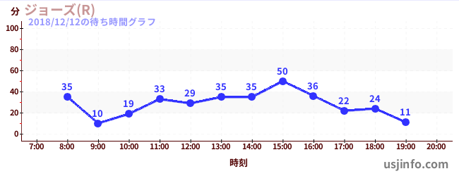 • ジョーズ(R)$B$N(B2018年12月12日の待ち時間
