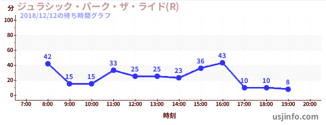 • ジュラシック・パーク・ザ・ライド(R)$B$N(B2018年12月12日の待ち時間