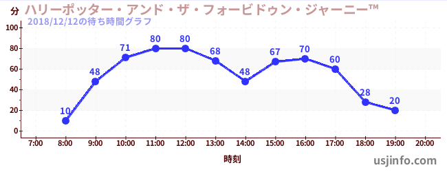 • ハリーポッター・アンド・ザ・フォービドゥン・ジャーニー™$B$N(B2018年12月12日の待ち時間