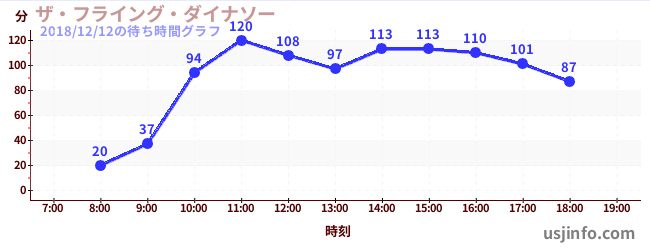 • ザ・フライング・ダイナソー$B$N(B2018年12月12日の待ち時間