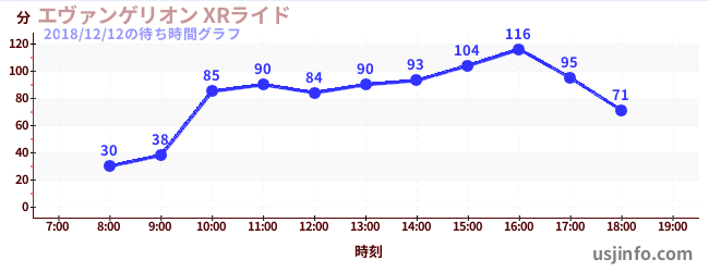 • エヴァンゲリオン XRライド$B$N(B2018年12月12日の待ち時間