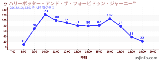 • ハリーポッター・アンド・ザ・フォービドゥン・ジャーニー™$B$N(B2018年12月13日の待ち時間
