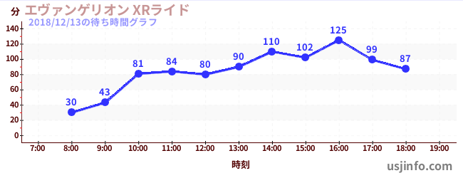 • エヴァンゲリオン XRライド$B$N(B2018年12月13日の待ち時間