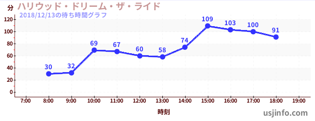 • ハリウッド・ドリーム・ザ・ライド$B$N(B2018年12月13日の待ち時間