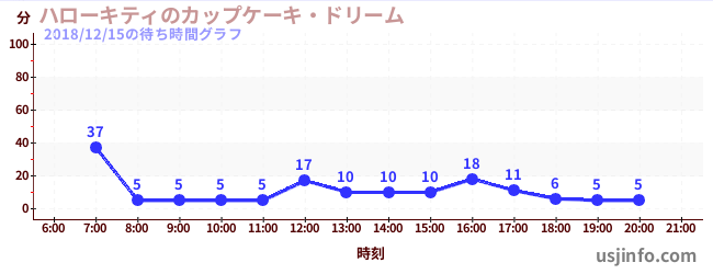 • ハローキティのカップケーキ・ドリーム$B$N(B2018年12月15日の待ち時間