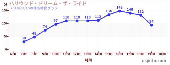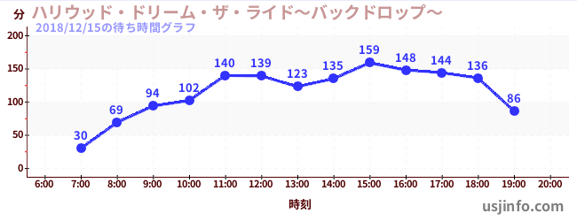 • ハリウッド・ドリーム・ザ・ライド〜バックドロップ〜$B$N(B2018年12月15日の待ち時間