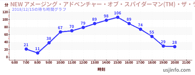 • NEW アメージング・アドベンチャー・オブ・スパイダーマン(TM)・ザ・ライド 4K3D$B$N(B2018年12月15日の待ち時間