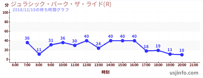 • ジュラシック・パーク・ザ・ライド(R)$B$N(B2018年12月15日の待ち時間