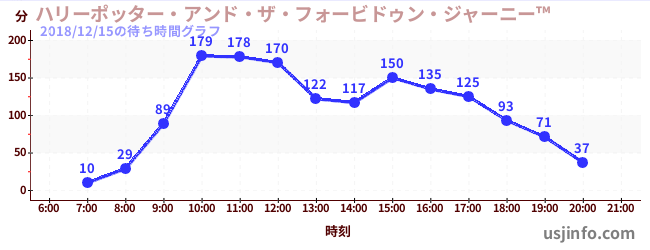 • ハリーポッター・アンド・ザ・フォービドゥン・ジャーニー™$B$N(B2018年12月15日の待ち時間