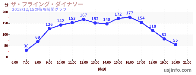 • ザ・フライング・ダイナソー$B$N(B2018年12月15日の待ち時間
