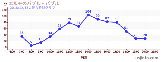 • エルモのバブル・バブル$B$N(B2018年12月15日の待ち時間
