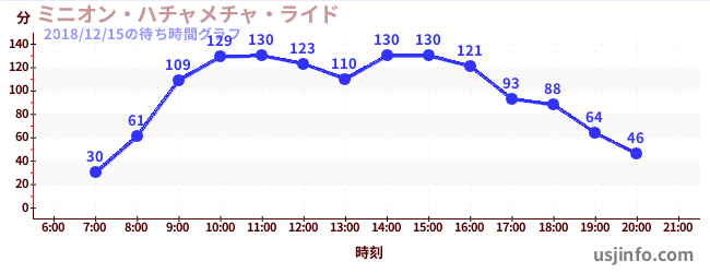 • ミニオン・ハチャメチャ・ライド$B$N(B2018年12月15日の待ち時間