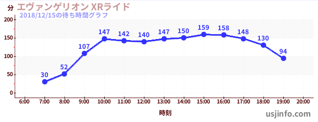 • エヴァンゲリオン XRライド$B$N(B2018年12月15日の待ち時間