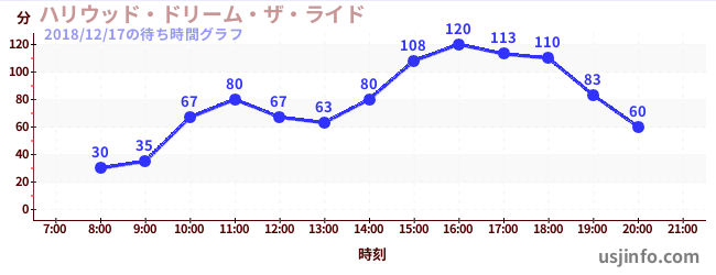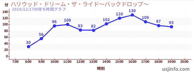 • ハリウッド・ドリーム・ザ・ライド〜バックドロップ〜$B$N(B2018年12月17日の待ち時間
