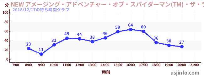 • NEW アメージング・アドベンチャー・オブ・スパイダーマン(TM)・ザ・ライド 4K3D$B$N(B2018年12月17日の待ち時間