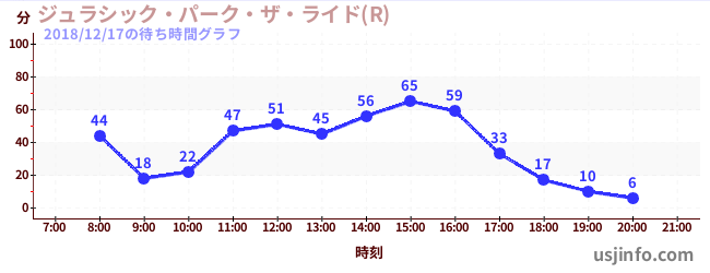 • ジュラシック・パーク・ザ・ライド(R)$B$N(B2018年12月17日の待ち時間