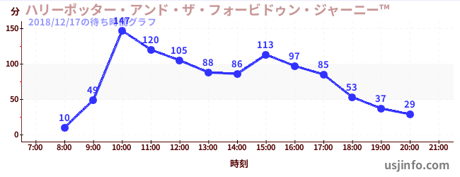 • ハリーポッター・アンド・ザ・フォービドゥン・ジャーニー™$B$N(B2018年12月17日の待ち時間