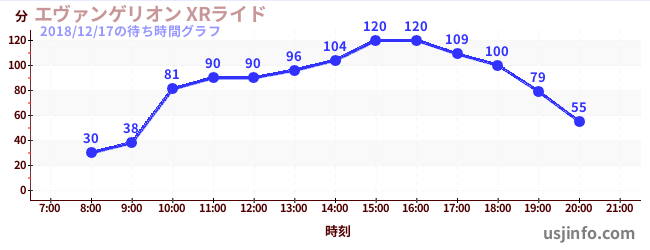 • エヴァンゲリオン XRライド$B$N(B2018年12月17日の待ち時間